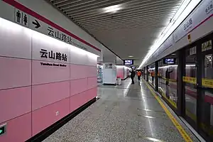 Yunshan Road (simplified Chinese: 云山路; traditional Chinese: 雲山路; pinyin: Yúnshān Lù) is a station on Shanghai Metro Line 6 and Line 14.[1] It began operation on December 29, 2007. It later became an interchange station on December 30, 2021 when Line 14 opened.[2] It is located at the junction of Yunshan Road and Zhangyang Road. Like all other stations on Line 6, it is located in Shanghai's Pudong New Area.