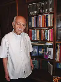 (2) The fingerprints of Lev Nussimbaum (1905–1942), who wrote under the penname of Essad Bey, can be traced in the folkloric and legendary material in the novel (although much of it is neither culturally or ethnically reliable). Identical descriptions of such material can be traced to his earlier works as he had a tendency to repeat himself in subsequent works.[22][23] Lev's lack of knowledge of the Azerbaijani language also contributed to his tendency to further distort historical record which is also evident in the novel. Archival documents indicate that Lev failed the one Azerbaijani language class that he took in high school[24] Another disadvantage was that Lev did not know the Arabic script, the official alphabet at that time in Azerbaijan.[25]