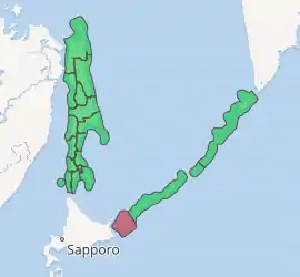 Yuzhno-Kurilsky District (Russian: Ю́жно-Кури́льский райо́н) is an administrative district (raion) of Sakhalin Oblast, Russia; one of the seventeen in the oblast.[1] Municipally, it is incorporated as Yuzhno-Kurilsky Urban Okrug.[5] It is located on the southern Kuril Islands southeast of the Island of Sakhalin, comprising the islands of Kunashir, Shikotan, and the Habomai. The area of the district is 1,856.1 square kilometers (716.6 sq mi). Its administrative center is the urban locality (an urban-type settlement) of Yuzhno-Kurilsk,[1] located on the Kunashir Island. Population: 9,501 (2010 Census);[3] 9,727 (2002 Census);[7] 13,597 (1989 Census).[8] The population of Yuzhno-Kurilsk accounts for 61.4% of the district's total population.[3]