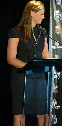 In 2015 she co-commentated the NRL grand final between the North Queensland Cowboys and the Brisbane Broncos. She is quoted saying that this was the greatest and most challenging assignment she’d had on a football field, due to the emotion and excitement of the ending.[9]