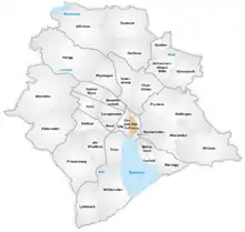 Rathaus is also the name of a quarter within the Altstadt district. It is an integral part of the medieval town on the right side of the Limmat, separated by the Hirschengraben from the Hochschulen quarter uphill to the east, and delimited by the Bellevue and Central squares to the south and north, respectively.