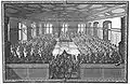 Depiction of the ceremony and conjuration of the alliance between the Republic of Venice and the Republics of Berne and Zürich on 22 January 1706 (copper engraving by Johann Melchior Füssli, 1718)