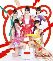 On the cover and in the music video all members are wearing costumes in the style of "sentai heroes",[6] main protagonists of Japanese television series in a genre called "sentai". The sentai genre (the word sentai means literally "squadron") evolves around a team of costumed superheroes fighting villains and includes such popular television shows and franchises as Kyōryū Sentai Zyuranger (remade into Power Rangers for the US), Kamen Rider, Ultraman, Metal Hero. The music video is also reminiscent of sentai films.[7] In the video, the girls use transformation belts to become helmeted fighters looking like sentai warriors,[7] and the Weekend Heroines[a] squadron fights fully armed with a song and a dance.[7] The protagonists of the superhero genre usually have transformation belts (henshin beruto) or some other transformation items (like rings, swords, etc.), which they use to transform into superheroes in armored suits. Momoiro Clover Z transformation belts are clover style.[6]