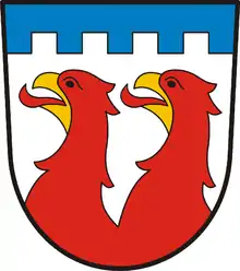 The coat of arms of the Jenštejn family is gules two vulture heads on a silver background.