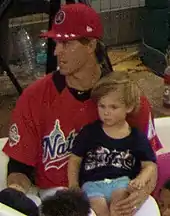 In 2003, Greinke opened the season with Wilmington, where he was 11–1 with a 1.14 ERA in 14 starts.[12] Those numbers earned spots on the Carolina League mid-season[13] and post-season all-star teams as well as Carolina League Pitcher of the Year award.[14] The Blue Rocks' manager, Billy Gardner, Jr., remarked that Greinke was "the best pitcher I've ever seen at this level of the minor leagues."[15] He was promoted in July to the AA Wichita Wranglers of the Texas League,[15] where in nine starts he was 4–3 with a 3.23 ERA.[16] He had a couple of games where he struggled at Wichita and gave up a lot of runs. However, he bounced back and helped them make the playoffs with a victory in the final game of the season.[15]