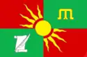 The sun on the district coat of arms symbolizes the developed energy complex of the region. A scroll and a quill pen represent rich traditions of spiritual culture. The Tamga (an ancient Turkic sign) is a symbol of the continuity of generations, historical memory, patriotism, and care for the historical and cultural heritage of the region. The green elements symbolize developed agricultural production. The gold color is a symbol of harvest, wealth, stability, respect, and intelligence. The silver represents the purity of spring water, perfection, nobility, mutual understanding. Red is a symbol of courage, strength, and beauty. The flag is based on heraldic elements of the coat of arms.[9][10]