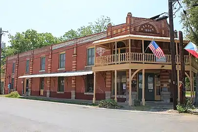 The Zapp Building later known as the Country Place Hotel and Restaurant is a historic building in Fayetteville, Texas. It was built in 1900 by builders Stidham and Kurtz in the Romanesque Revival style for local merchant Hugo Zapp to replace a wooden building at the site which burned down. Zapp bought a shop at this prominent location at the northwest corner of the town square in 1876.[3] It was added to the National Register of Historic Places on June 23, 1983 and designated a contributing property to the Fayetteville Historic District by the registrar on July 10, 2008.[3][4]