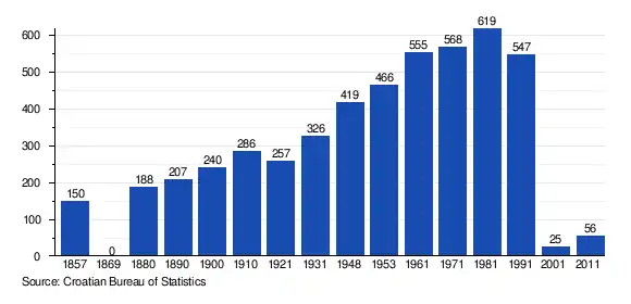 The 1991 census[3] recorded that 97.25% of the village population were ethnic Serbs (532/547), 1.09 % were Croats (6/547) while 1.66% were of other ethnic origin (9/547).