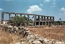 Most dwelling ruins in Zarzita have a simple rectangular style without cornices or other moldings. One ruin remains in only a two-story portico, while others just have inscriptions.[1] Two on the south side of town have inscriptions that read: