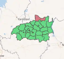 Zavolzhsky District (Russian: Заво́лжский райо́н) is an administrative and municipal district (raion), one of the twenty-one in Ivanovo Oblast, Russia.[1] It is located in the north of the oblast. The area of the district is 1,140 square kilometers (440 sq mi).[2] Its administrative center is the town of Zavolzhsk.[1] Population: 18,468 (2010 Census);[3] 22,039 (2002 Census);[8] 28,572 (1989 Census).[9] The population of Zavolzhsk accounts for 65.2% of the district's total population.[3]