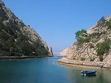 Zavratnica is a 900 m long narrow inlet located at the foot of the mighty Velebit Mountains, in the northern part of the Adriatic Sea, 1 km south of Jablanac, Croatia. Regarded as one of the major tourist attractions of the northern coastal area because of its beauty, Zavratnica was designated a protected landscape in 1964.