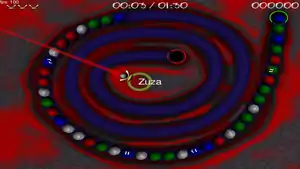 Unlike Zuma, where the player shoots new balls from a center point, in Zaz the player moves a grabber on a separate track on the playfield to grab a ball that can then be shot back at a new location.[4][5] Instead of inserting randomly assigned new balls, the player moves existing balls.[6]