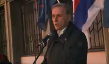 During his youth, Ponoš resided in Zagreb and later married Zdenka, a Croat woman from Inđija.[4][124] He has one brother, while his father died shortly before Operation Storm.[125] His maternal grandfather was mobilized by the Yugoslav Partisans and died in combat at the Syrmian Front.[124] He also holds Croatian citizenship.[3][126]