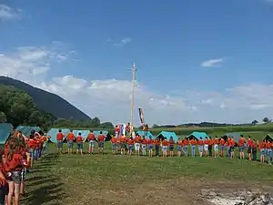 The history of Scouting in Slovenia dates to the former Kingdom of Yugoslavia. In 1922, a meeting (slet) of Sokol, an important Pan-Slavic movement and sport organisation in Yugoslavia, took place in Ljubljana, where Bosnian and Serbian Scouts also attended. Scouting was officially established in Slovenia in October 1922, and soon a large number of Scout groups in Slovenia contributed to the establishment of the common Scout Region (named Župa) for Croatia and Slovenia, founded in Osijek. The Slovenian own Scout Region was established in early 1923 at Ljubljana. The first Slovene Scout and Guide camp was organized during the summer of 1923[1] at Kamniška Bistrica.