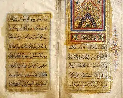 Zeinolabedin Mahallati or Zayn al-Abidin ibn Muhammad ibn Ali al-Mahallati (Persian: زين العابدين محلاتي ; Arabic: زين العابدين بن محمد بن علي المحلاتي ) was an eminent Persian calligrapher who was active in the period around the 1870s. He lived in Mahallat, under the Qajari Persia. He produced several gold illuminated Korans and Tafsir books.[1]