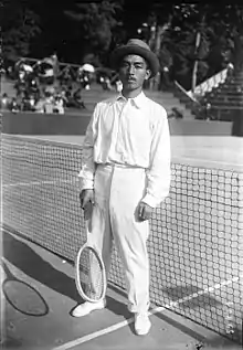 While having this educational background and career he reached the All-Comers final of the Wimbledon Championships in 1920, where he lost to Bill Tilden 4–6, 4–6, 11–13. At the 1921 Wimbledon Championships he reached the semifinal which he lost to Manuel Alonso in five sets. He also was a member of Japan's Davis Cup team that finished second to United States in 1921. In 1921 he won the singles title at the Queen's Club Championships by defeating Mohammed Sleem in the final in straight sets. He established the earliest period of Japanese tennis together with Ichiya Kumagae (accurately speaking, Kumagai).