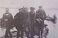 On 4 May 1916 at 9:00 am the wind turned toward the northeast and drove the wreck of the airship towards the stone coast of Sør-Sunde. As a result, the gondola and motors were crushed and the ship's machine guns fell into the water. In order to prevent the ship from doing any damage to the nearby towns, Norwegian Colonel Johannesen summoned 12 soldiers who, at 3:00 pm, fired at the wreckage from a distance of 120 metres (393 ft 8 in), igniting the remaining hydrogen in a massive explosion.[19]