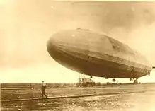 LZ 72 (navy designation L 31) was an R Class super-zeppelin belonging to the Imperial German Navy. It was commanded by Kapitänleutnant Heinrich Mathy, an experienced commander, and took part in several raids over London during World War I.[1] It also participated in a reconnaissance role during the Sunderland raid of 19 August 1916. Its last flight was launched late at night on 1 October 1916. Several miles north of London, it was caught in searchlights and anti-aircraft fire. During this engagement, 2nd Lt. Wulstan J. Tempest was on patrol and spotted the zeppelin. He proceeded to engage the airship with incendiary rounds, causing the ship to burst into flames and crash in a field near Potter's Bar.[2][3] After this disastrous crash, the Imperial German Navy began decreasing its amount of zeppelin raids. The entire crew died, and were originally buried there but were transported to Cannock Chase in the 1960s.[1]