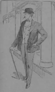 Eduardo Zerega was born Edgar E. Hill around 1860 in Columbus, Indiana, USA.[14] On 21 April 1880 he married May D Keith in Bartholomew, Indiana.[15] Because the marriage was opposed by her father, the couple left Columbus, and went to live in London.[16] When visiting New York in 1896, the papers described him as "about five feet five inches in height, and strongly built".[13] For a time in England, Eduardo Zerego claimed to be a Spanish national,[17] before confirming his American citizenship.[18] He died in London on 22 July 1922,[19] leaving effects of £5,105,[20] (worth about £250,000 now).