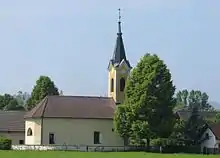The church in Zgornji Kašelj is dedicated to Saint Andrew (Slovene: sveti Andrej). The church was first mentioned in written sources in 1520, when it was consecrated by Bishop Natalis de Turre. The church acquired its present form in the 18th century, and the altars date from the second half of the 19th century. The church has a choir railing with fine Rococo carving, which is said to have come from the Ursuline Church of the Holy Trinity in Ljubljana. The church contains a painting of Saint Agnes by Anton Cebej. A Roman gravestone is built into the exterior wall of the chancel.[1]