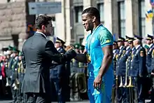 ![]() Beleniuk with his gold medal at the 2020 Summer Olympics | |