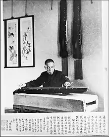 Zhang Ziqian (simplified Chinese: 张子谦; traditional Chinese: 張子謙, 1899–1991), a famous seven-string zither qin player, was born in Yangzhou, Jiangsu Province, China, during the late Qing Dynasty. He began studying the guqin with a guqin master Sun Shaotao at the age of thirteen. In the 1930s, Zhang moved to Shanghai and worked as an accountant at a salt factory.[1] In Shanghai, he met Zha Fuxi and Peng Zhiqing who were active qin players then. They frequently played the guqin together and Zhang's playing skills were greatly influenced by them. In 1936, Zhang, Zha, Peng and other masters founded Jin Yu Qin She (Qin Society of Contemporary Yu Region), a qin society. In 1956, Zhang became a guqin performer by being appointed as a member of the state-run Shanghai Minzu Yuetuan (Shanghai National Music Ensemble); and a guqin teacher at the Shanghai Conservatory of Music in 1960.[2]