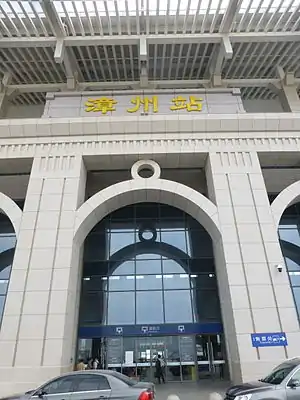Zhangzhou railway station is the main train station of the Zhangzhou metropolitan area in China's Fujian Province. The station is located in Hongtang Village (洪塘村) of Longhai District, about 10 km south of downtown Zhangzhou.[1] It is located on the common section of the Longxia Railway (Longyan-Xiamen; opened in mid-2012) and the Xiashen Railway (Xiamen-Shenzhen Railway; opened at the end of 2013).
