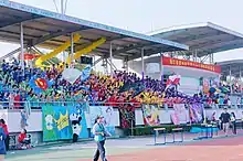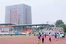 The sports days, which often last for 3 days, contain track and field. According to tradition, every 3 classes of different grades would team up as a league to join the competition. Each league would design and buy the outfits weeks ahead of the sports day. Many leagues write their songs to cheer members up, and some even make their mascots and flags.[19]
