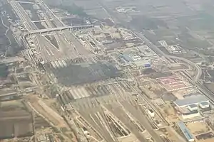 The station is located about 6 km (3.7 mi) to the east of Zhengzhou Xinzheng International Airport in Zhengzhou Airport Economy Zone. According to the plan, the station will become one of the four main passenger stations in Zhengzhou. Upon completion, the station will become the junction and the terminus of the now under construction Zhengzhou–Wanzhou high-speed railway and Zhengzhou–Fuyang high-speed railway, and also serve as the main hub for intercity railways in Henan province.[1] The Zhengzhou–Xinzheng Airport intercity railway will also be extended to serve this station.