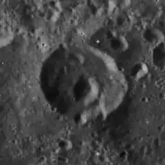 Zhiritskiy is a lunar impact crater that is located on the far side of the Moon. It lies to the south of the large walled plain Fermi, and northwest of the crater Schaeberle.