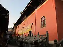 The Mahavira Hall is the main and third hall in the temple. It has a double-eave gable and hip roof (重檐歇山顶) covered with yellow glazed tiles, which symbolize a high level in architecture because yellow was the symbol of the royal family.[3]