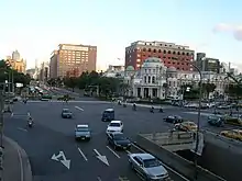 Zhongxiao Road (Chinese: 忠孝東路、忠孝西路, also called 4th Blvd. or Chunghsiao Road) is a major arterial boulevard and part of provincial highway 5 in Taipei, Taiwan, connecting the Zhongzheng district in the west with the Daan, Songshan, Xinyi, and Nangang districts towards the east. Zhongxiao is known as a popular shopping and entertainment area, with many large department stores and shopping malls located along most of the entire stretch. About half of the Nangang Line of the Taipei Metro runs under the road, with stations located at major intersections along the road, which accounts for the significant pedestrian traffic along the road. The majority of the road is 8-10 lanes wide with a median dividing the road. At the intersection with Zhongshan Road, there is a two-lane underpass for traffic on Zhongxiao Road to bypass the intersection.