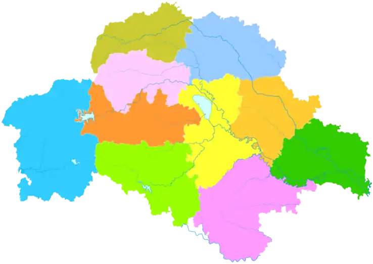 The prefecture-level city of Zhumadian administers 1 district and 9 counties.