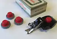 "YS Star" is a brand of Japanese sewing accessories that once included a zigzagger, model YS-7. Like the Singer zigzagger, it fits almost any low-shank sewing machine and draws mechanical power via an arm connected to the machine's needle clamp. Its stitch pattern is controlled by small flat rectangular metal templates, seven of which are included.[2]