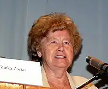 Zinka Zorko (February 24, 1936 – March 22, 2019) was a Slovenian linguist and academic. Her research focused on phonetic, theological, syntactic, and vocabulary phenomena of Carinthian, Styrian, and Pannonian dialect groups. In 2003, she was elected a full member of the Slovenian Academy of Sciences and Arts, and a decade later, she received the Zois Lifetime Achievement Award.