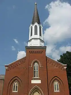 Zion Evangelical Church is a historic United Church of Christ church located in downtown Evansville, Indiana. It was built in 1855, and is a Gothic Revival style brick church. It features Gothic arched openings and an octagonal steeple.[2]