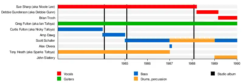 | Past members | Ian Tafoya Sparks Tafoya Nicole Lee Nicky Tafoya Alex Olvera Scott Schafer Debbie Gunn John Slattery |
