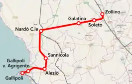 | Termini | Zollino railway station Gallipoli railway station | ||||||||||||||||||||||||||||||||||||||||||||||||||||||||||||||||||||||||||||||||||||||||||||||||||||||||||||||
