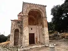 Located some 5 km west of the village, the modern church was originally the narthex or lite of the katholikon church of a monastery.[1] The monastery is otherwise unidentified and is not mentioned in any source or inscription, but the name "Monastery of Sterna" may be applicable to it. On the other hand, it is possible that this monastery is the same as the Monastery to the Theometor mentioned in the hagiography of Meletius the Younger, in which case it dates to the end of the 11th century. On stylistic grounds, it has been dated to the late 12th century.[1][2]