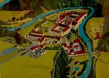 The monastery was constructed, as Cistercian houses often were, in a river valley, in this case in a bend of the River Kamp. Extensive buildings were erected, and the church, chapter-room, and dormitory were blessed in 1159, though the entire monastery was not completed until 1218. Zwettl Abbey soon became one of the most important monasteries in the order.