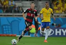 - Here's Toni Kroos. Sami Khedira. Now Müller. Free kick's going to be given Brazil's way; this is turbocharged.