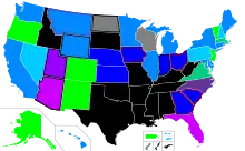 These principles are embodied in the laws of most states. Forty states have enacted legislation severely limiting abortions after fetal viability. Laws in 32 states limit abortions after viability to cases in which the woman's life at serious risk or her health is endangered, although five of the 32 also permit abortions in cases of fetal defect. Laws in seven states permit abortions after viability only when the woman's life is endangered; California is the only state where laws ban late abortions for any reason.- Democratic Underground, "Fetal Viability And Late-Term Abortion: The Facts And The Law". www.democraticunderground.com. Retrieved October 5, 2015.