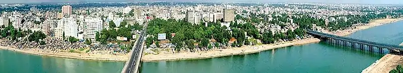 Ahmedabad is the largest city and former capital of the Indian state of Gujarat. It is located on the banks of the Sabarmati River, 30 km (19 mi) from the state capital Gandhinagar. It is also ranked third in Forbes' list of fastest growing cities of the decade and also the fifth largest city and seventh largest metropolitan area of India.