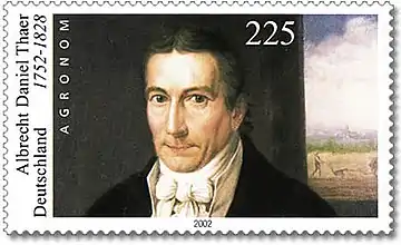 Albrecht Daniel Thaer (14 May 1752 – 26 October 1828) was a renowned German agronomist and an avid supporter of the humus theory for plant nutrition.