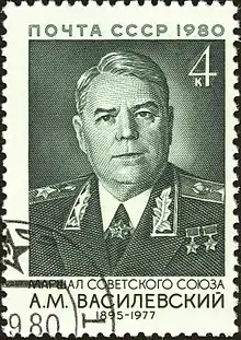 Aleksandr Mikhaylovich Vasilevsky (September 30, 1895 – December 5, 1977) was a Soviet military commander, promoted to Marshal of the Soviet Union in 1943. He was the Soviet Chief of the General Staff and Deputy Minister of Defense during World War II, as well as Minister of Defense from 1949 to 1953. As the Chief of the General Staff, Vasilevsky was responsible for the planning and coordination of almost all decisive Soviet offensives, from the Stalingrad counteroffensive to the assault on East Prussia and Königsberg. In July 1945, he was appointed Commander-in-Chief of Soviet forces in the Far East, executing Operation August Storm and subsequently accepting Japan's surrender. After the war, he became the Soviet Defense Minister, a position he held until Stalin's death in 1953. After his death, he was buried in the Kremlin Wall Necropolis in recognition of his past service and contributions to his nation.