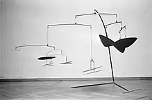 Installation photo of a Calder standing mobile, Stedelijk Museum Amsterdam, 1969