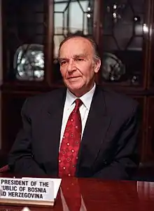 Alija Izetbegović (8 August 1925 – 19 October 2003) was a Bosnian activist, philosopher, and politician, president of Republic of Bosnia and Herzegovina from 1990 to 1996 and member of the Presidency of Bosnia and Herzegovina from 1996 to 2000, and author of several books, including Islam Between East and West.