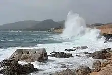 But when loud surges lash the sounding shore,