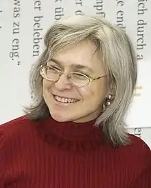 Anna Stepanovna Politkovskaya (30 August 1958 – 7 October 2006) was a Russian journalist, author and human rights activist well known for her opposition to the Chechen conflict and then-Russian President Putin.