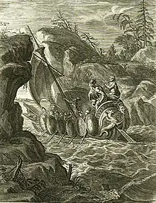 δῖα Θέτις, Πλαγκτῇσιν ἐνὶ σπιλάδεσσιν ἐρύσσαι.- The Nereids, swimming in from all directions, met them here, and Lady Thetis coming up astern laid her hand on the blade of the steering-oar to guide them through the Wandering Rocks.